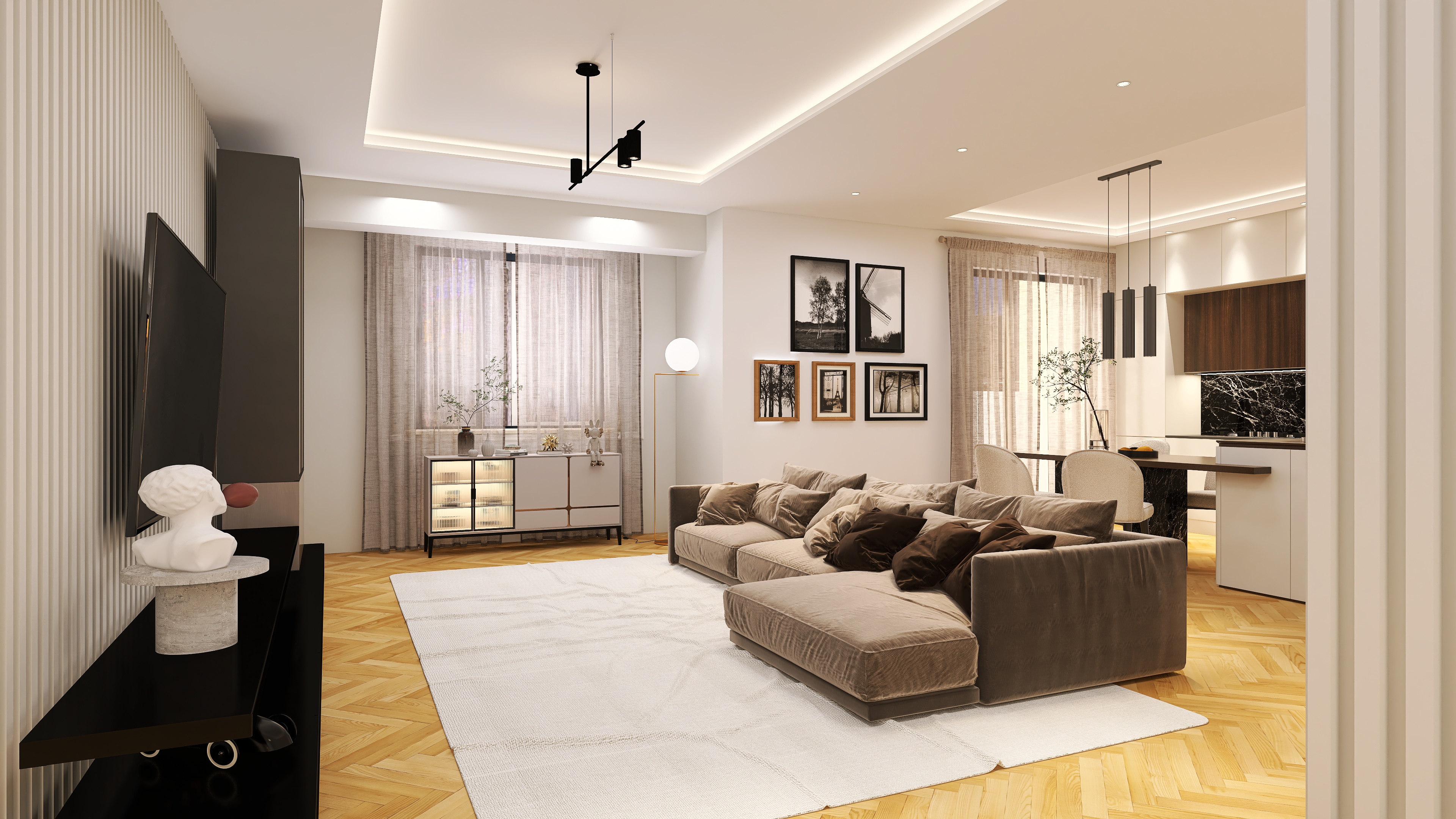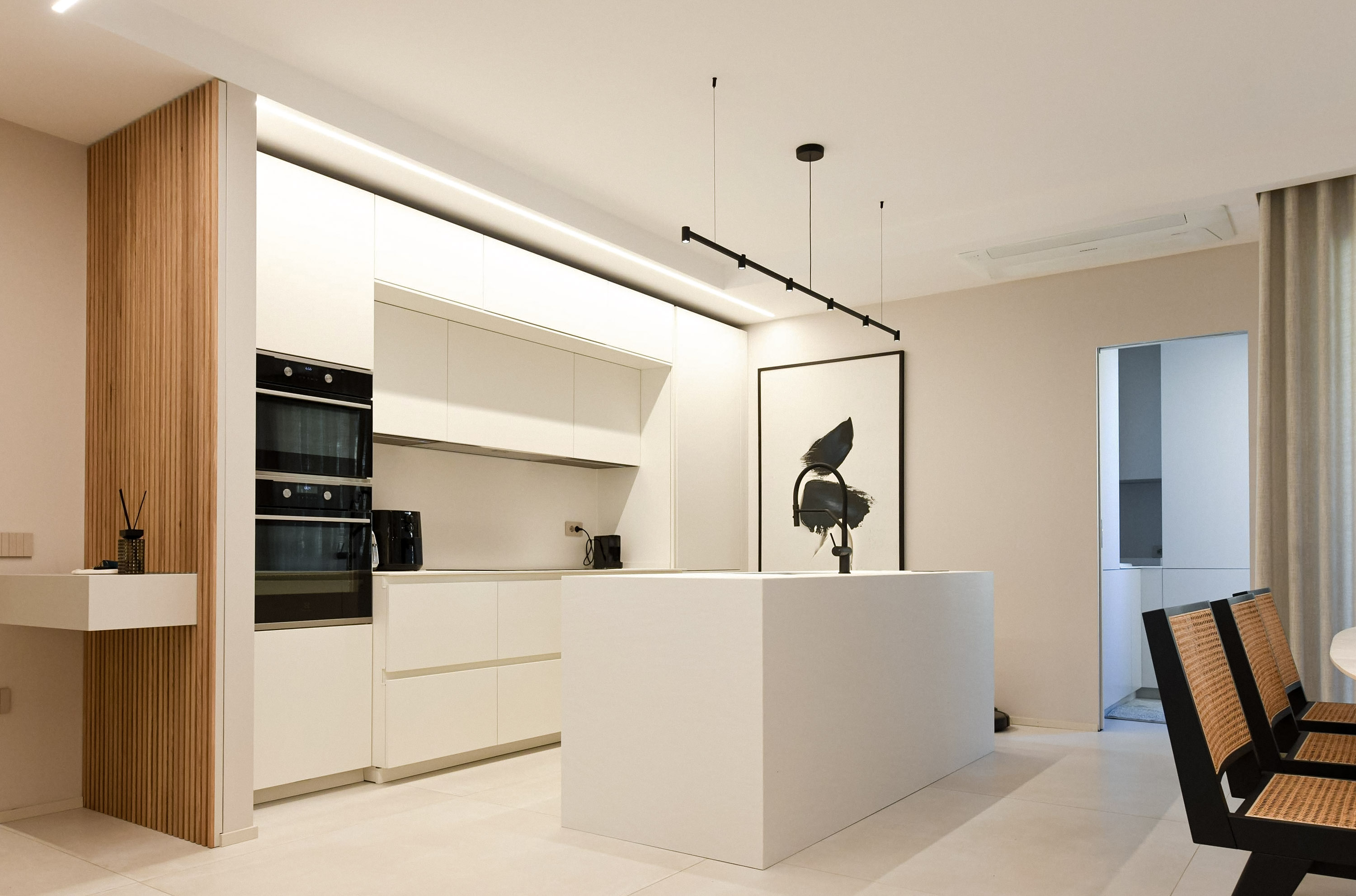 Un progetto per un appartamento che incarnasse l’essenza del design minimalista, rispettando la richiesta del cliente per uno spazio pulito, dalle linee semplici, ma che al contempo esprimesse un lusso sofisticato. Le pareti bianche sono state scelte come base cromatica per esaltare la luminosità naturale degli ambienti e ampliare visivamente gli spazi, creando una tela neutra che lascia risaltare i dettagli più ricercati.